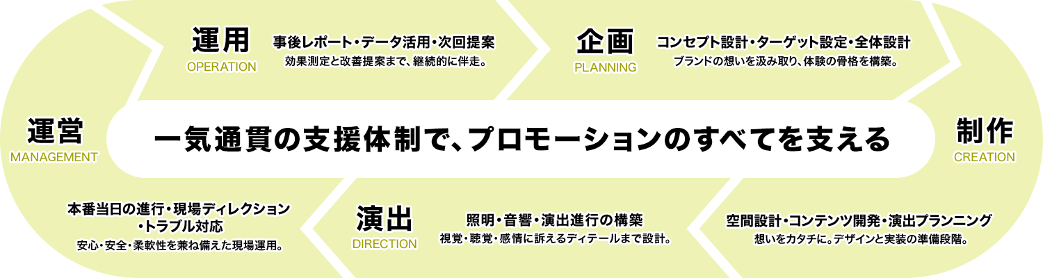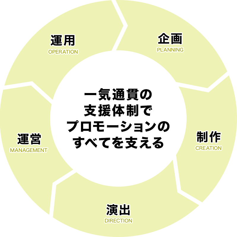 私たちは、プランニングから制作・運営までを一手に担う、フルラインナップ体制を整えています。